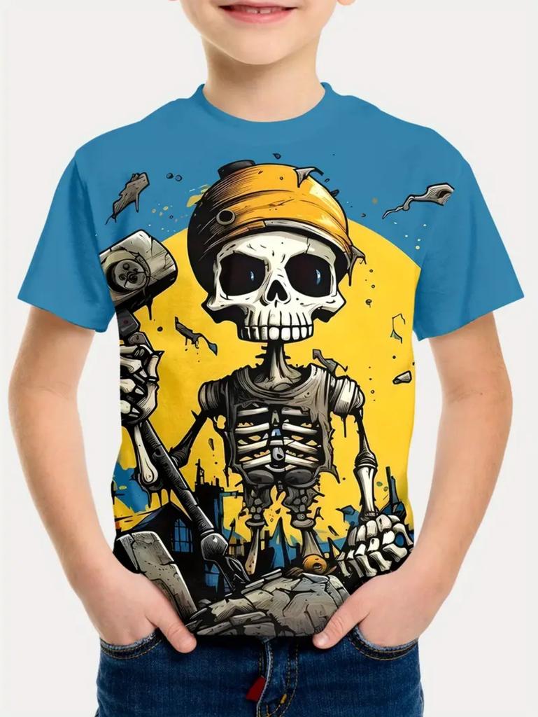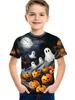 Halloween Boy's T-Shirt Pumpkin Pattern Summer Short Sleeves Skull Fashion Print Kids Tops 2-10y Party Gift Children's Clothing