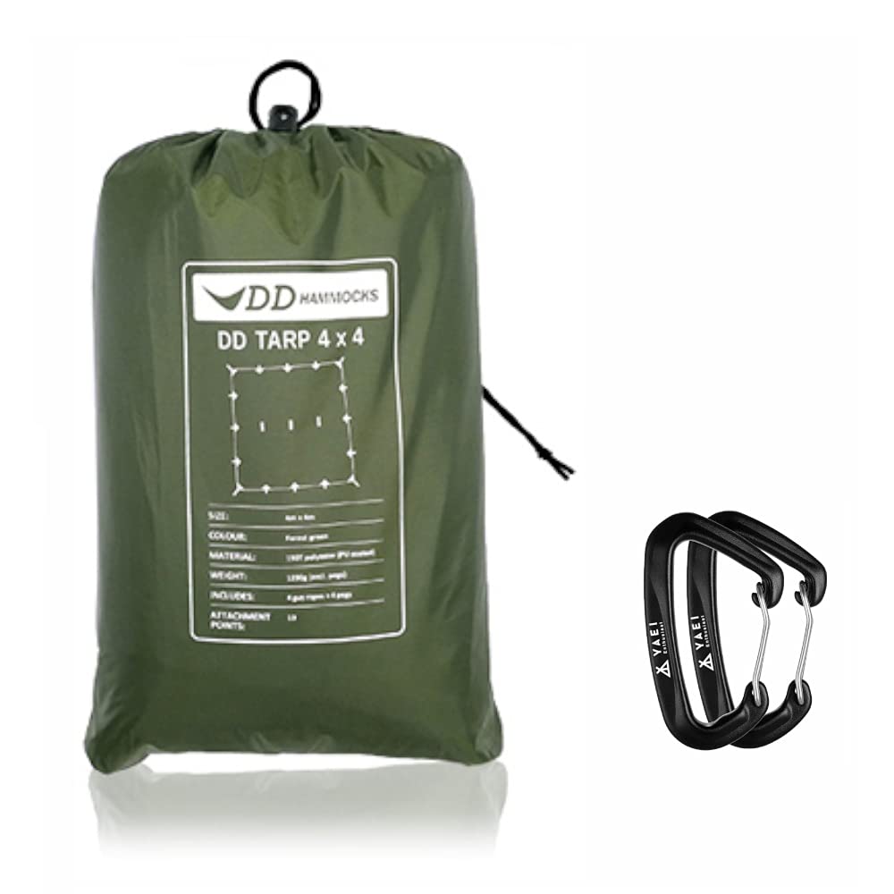 DD Hammocks Tarp, Forest Green [Direct from UK Manufacturer] with High-Strength Carabiners (Parallel Import) (4x4 Tarp)