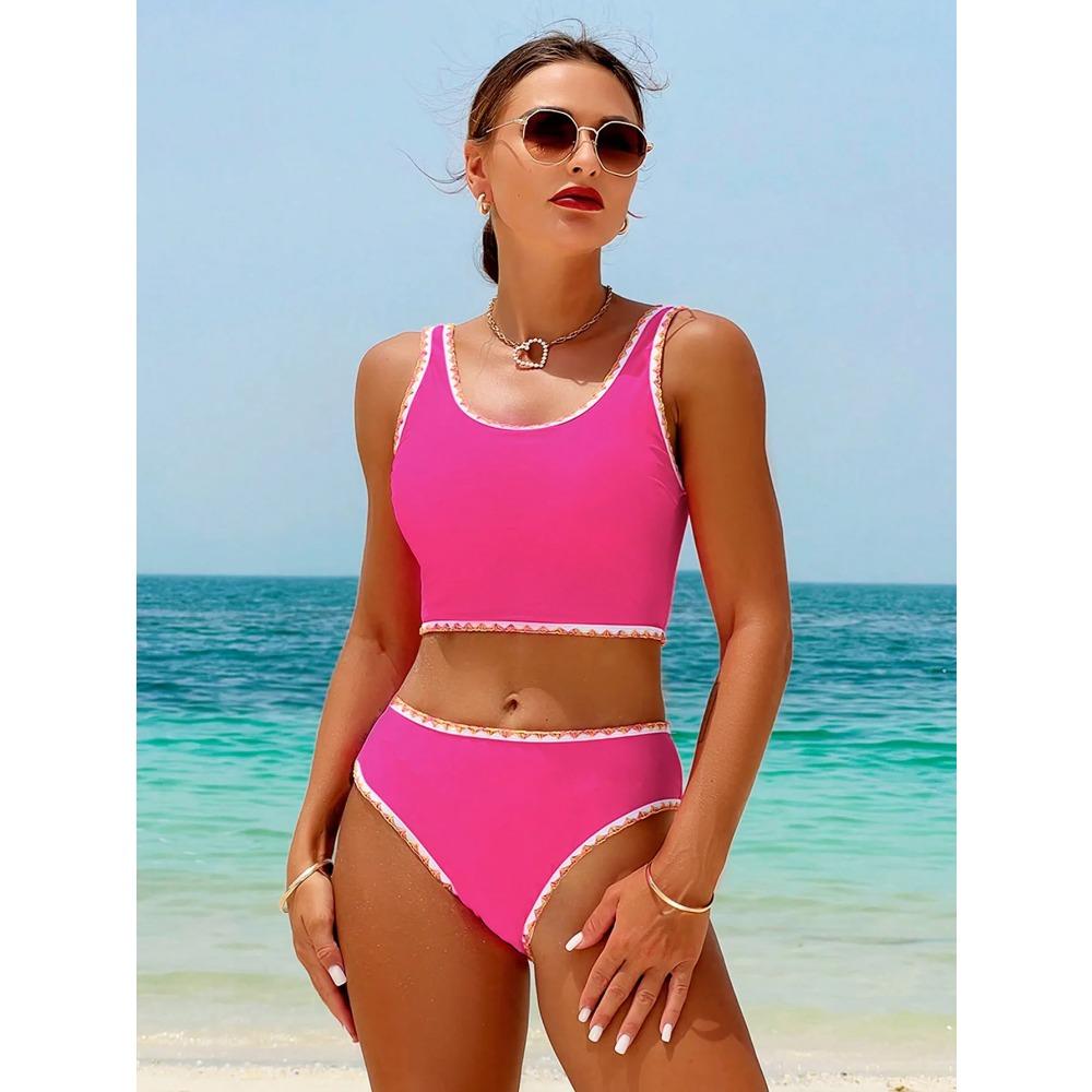 Sexy Hot Pink Patchwork Bikini Set 2026 Women Push Up Pad Vest High Waist Swimsuit Beach Bathing Suit Holiday Two Piece Swimwear