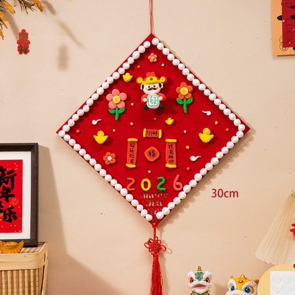 30x30cm Fu Character Pendant Hanging Happy Horse Year Lunar New Year Ornament Red Color DIY Crafts Big Fu Wall Pendant