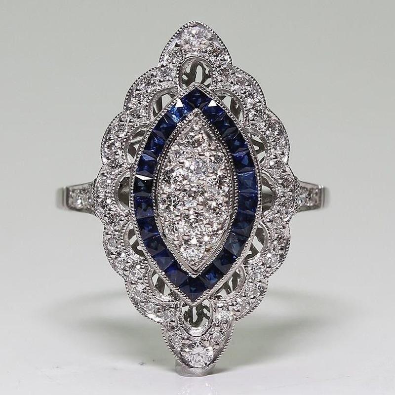 Antique Art Deco Silver Sapphire and Diamond Ring Bridal Wedding Marriage Engagement