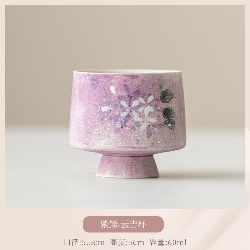 2pc/lot Hand-painted Hydrangea Purple Scales High Foot Teacup Tea Bowl Mug Tea-tasting Fragrance Cup Chazhan Master Cups 60ml