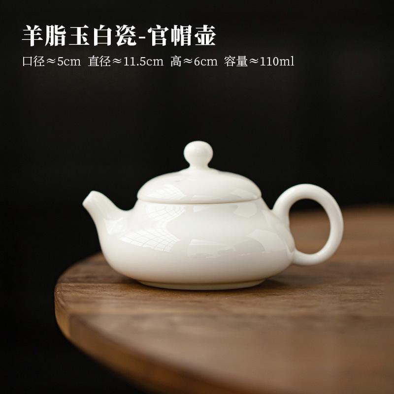 110ml Boutique Sheep Fat Jade White Porcelain Teapot Elegant Officer Hat Pot Tea Brewing Kettle with Strainer Cha Supplies Gift