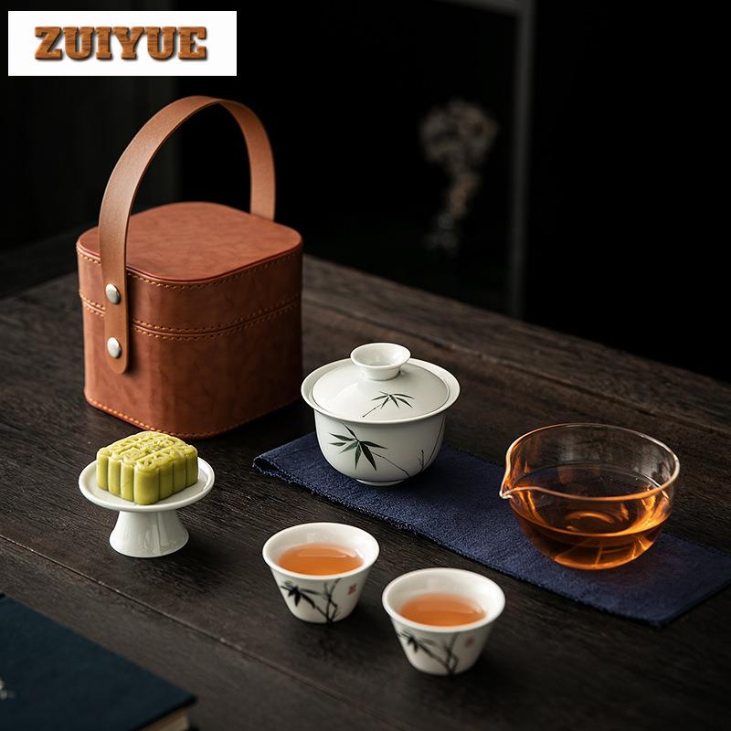 Hand Painted Lotus Glass Travel Tea Set Kit Retro 1 Pot 3 Cups Tea Brewing Travel Tea Set Portable Organizer Supplies Ornaments