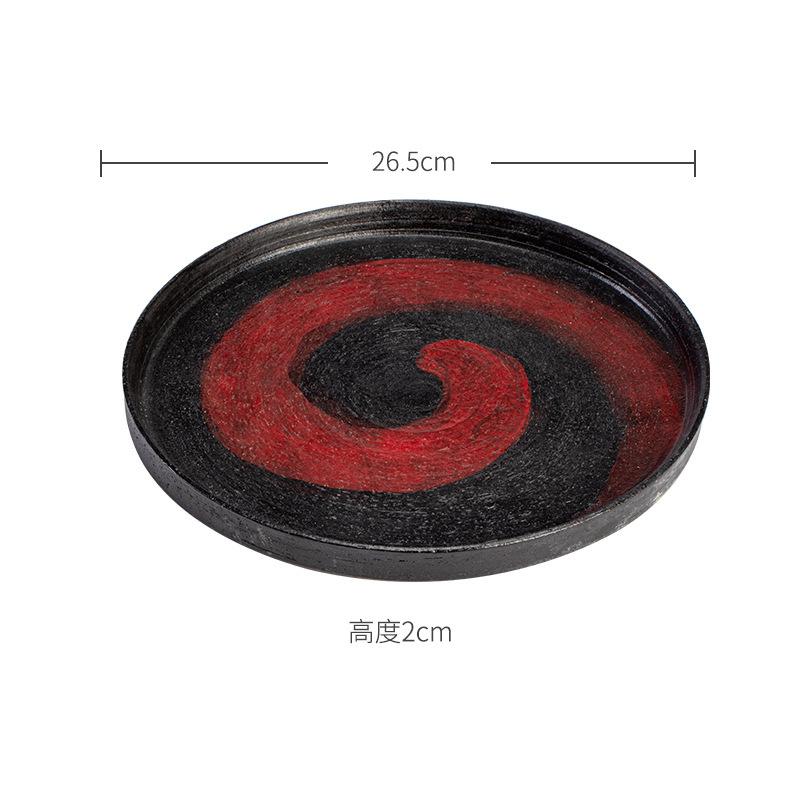 Brush Red Ceramic Tea Tray Handmade Coarse Pottery Dry Soaking Tray Breakfast Tray, Fruit Storage Plate Kung Fu Tea Ceremony