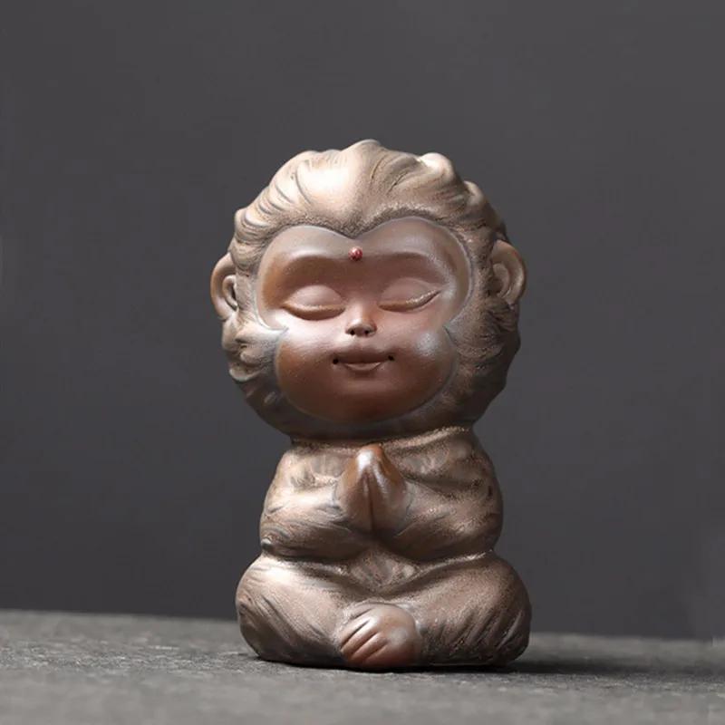 Chinese Purple Clay Tea Pet Monkey King Tea Figurine Ornaments Handmade Sculpture Crafts Chinese Tea Set Decor Accessories