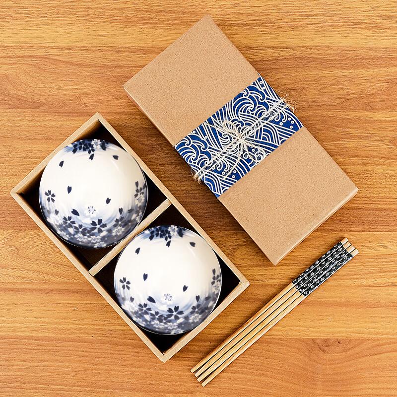 Elegant Chinese Ceramic Rice Bowl & Chopsticks Set