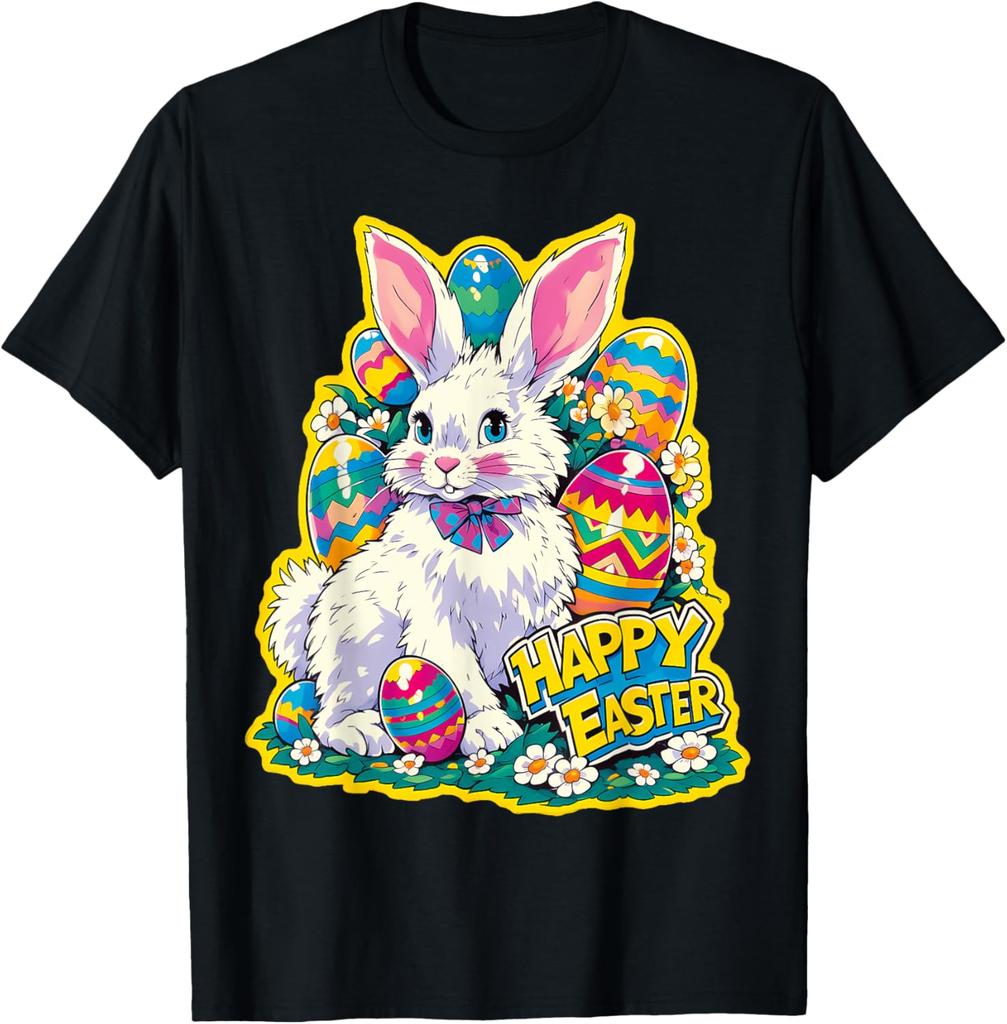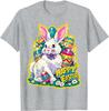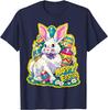 Happy Easter Bunny Floral Eggs Graphic Tee Soft Cotton Casual Short Sleeve T-Shirt