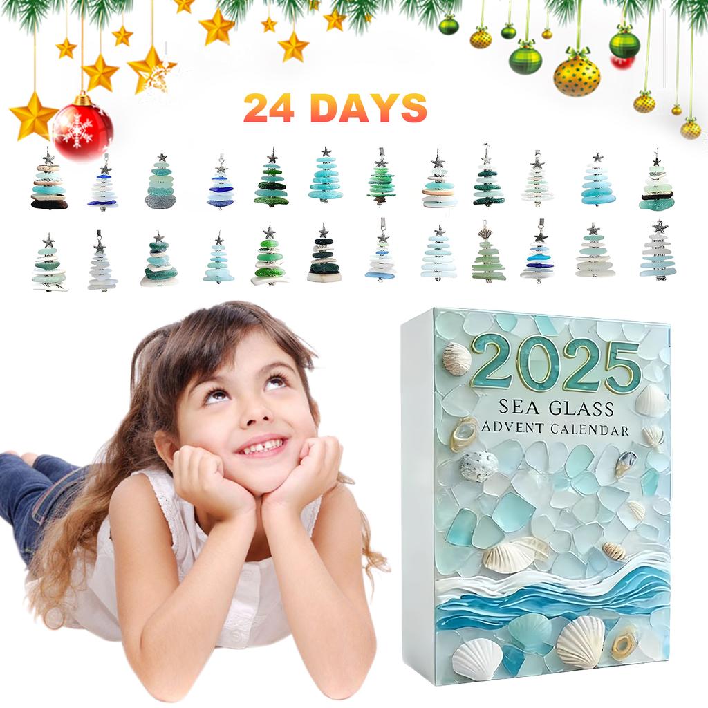 Sea Glass Christmas Tree Xmas Countdown Calendar with 24 Mini Christmas Tree Ornaments Holiday Countdown Calendar for Tree Decor