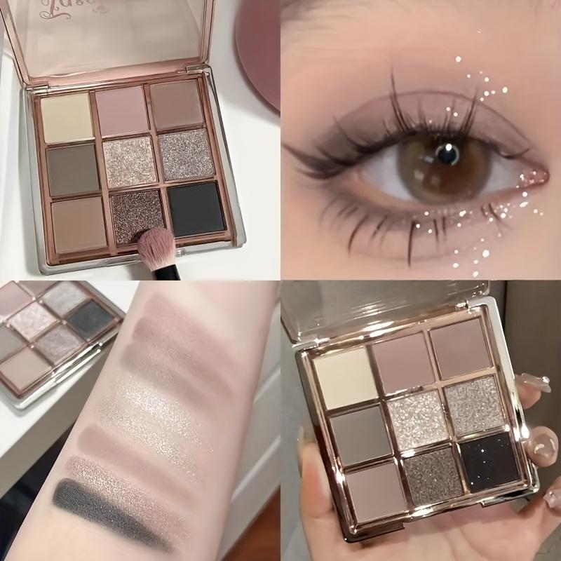 9-Color Multifunctional Eyeshadow Palette, Matte & Shimmer Effects - Low To High Key, Earthy & Neutral Tones, Long-Lasting Cream Texture for Daily Use