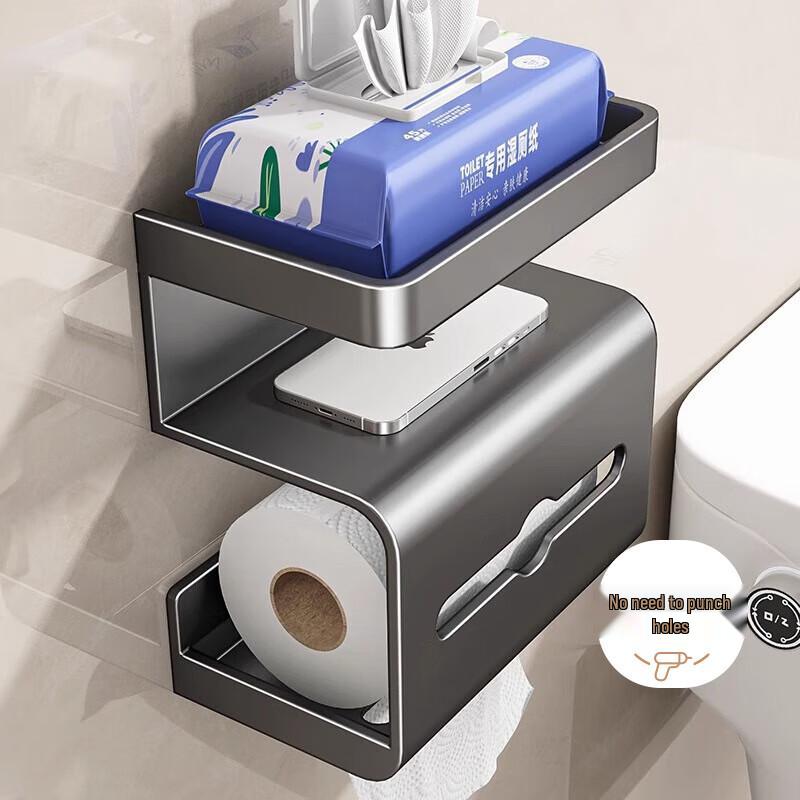 Muya Waterproof Adhesive Toilet Paper Holder with Storage Shelf