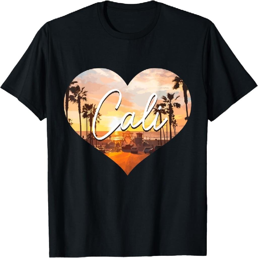California Cali Vintage Sunset Heart Retro T-Shirt