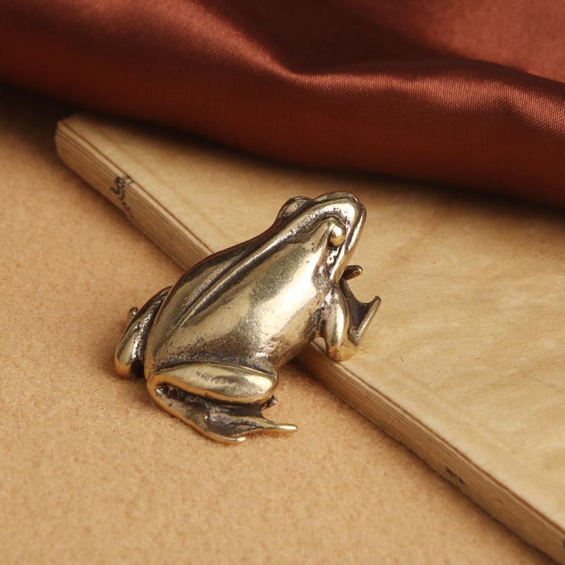 Solid Brass Vintage Frog Desktop Ornament Realistic Toad Topper Creative Wealth-Attracting Tea Pet Old Copperware Wholesale