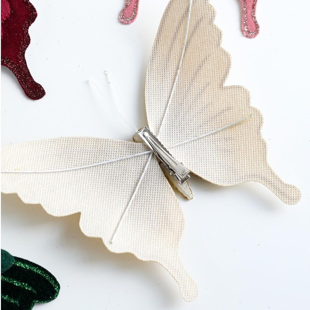 Velvet Butterfly Christmas Flower Double Simulation Glitter Christmas Decorations Flocking Artificial Exquisite Sequins