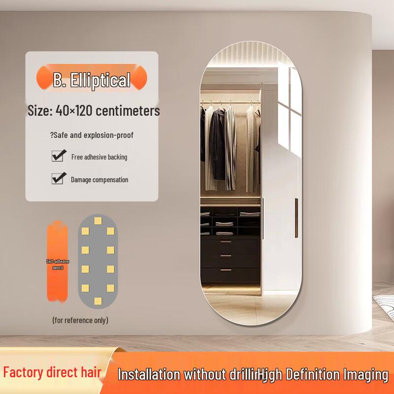 Soft Rubber Oval Self-Adhesive Wall Mirror