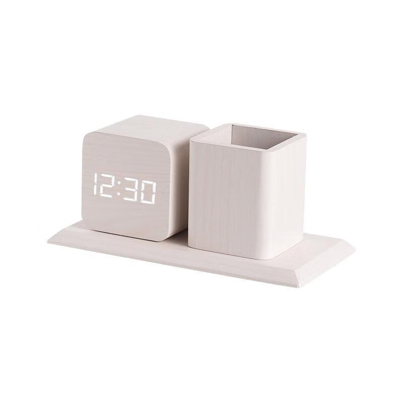 HANDUNYOU Creative Wood Grain Alarm Clock with Pen Holder