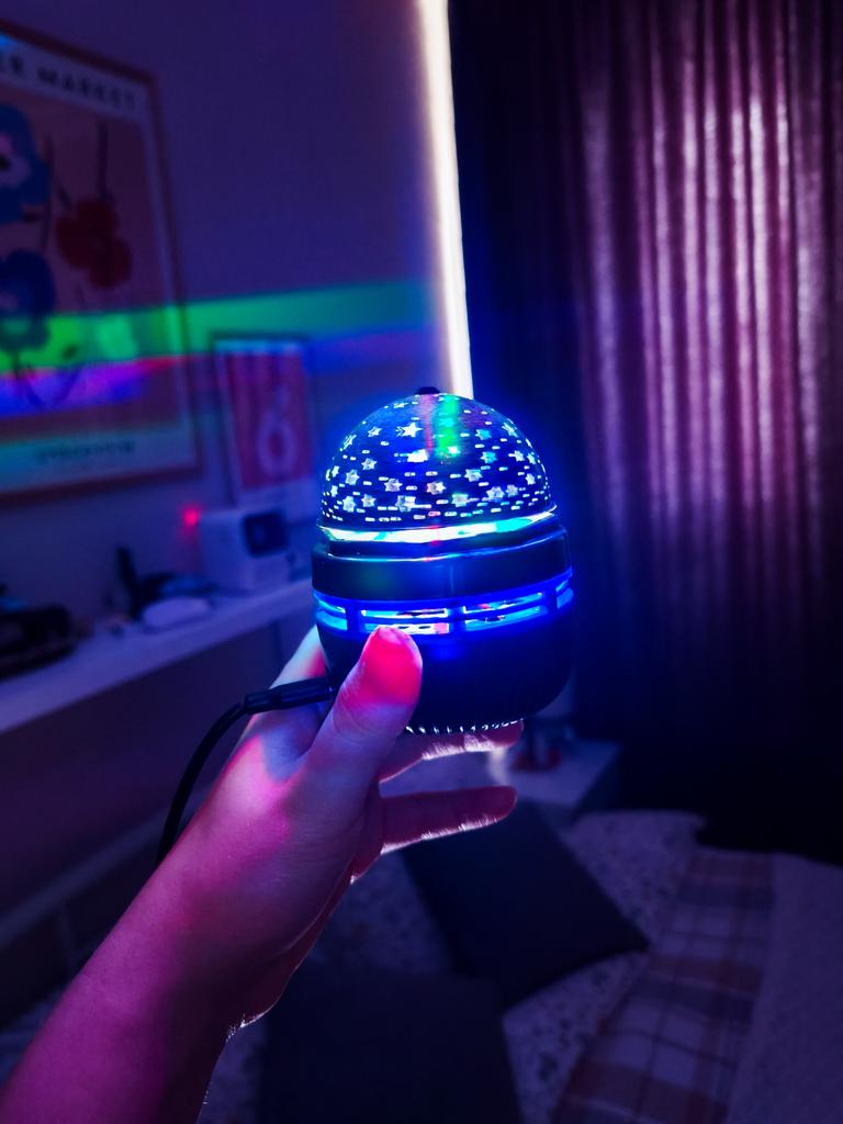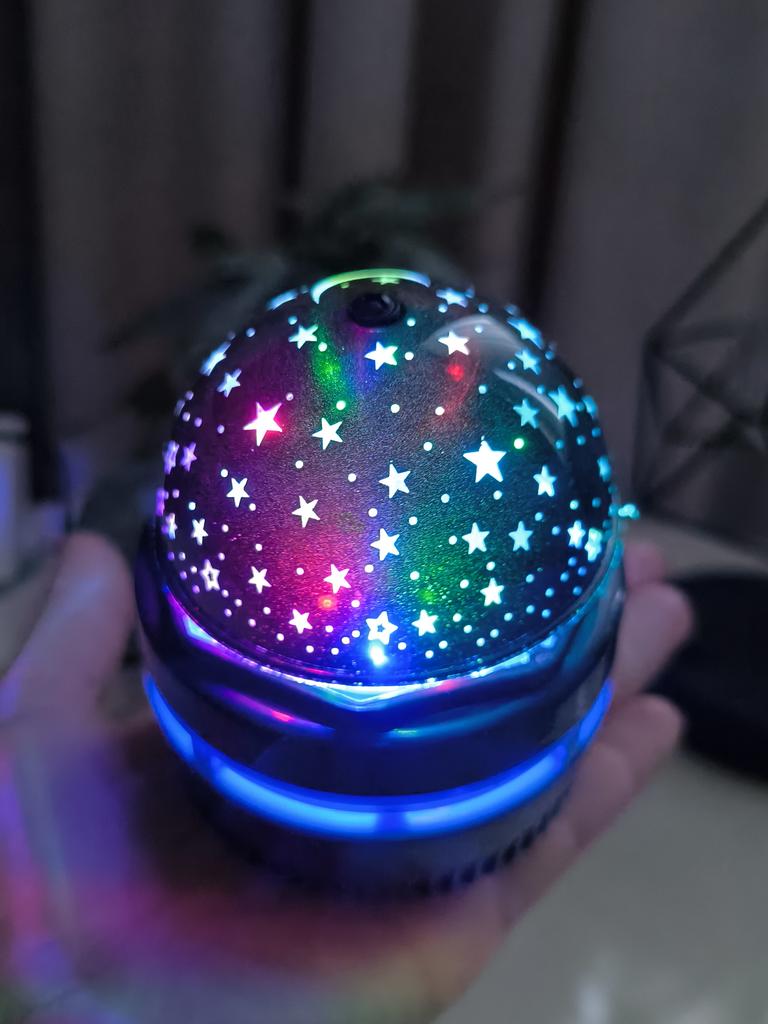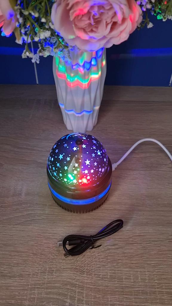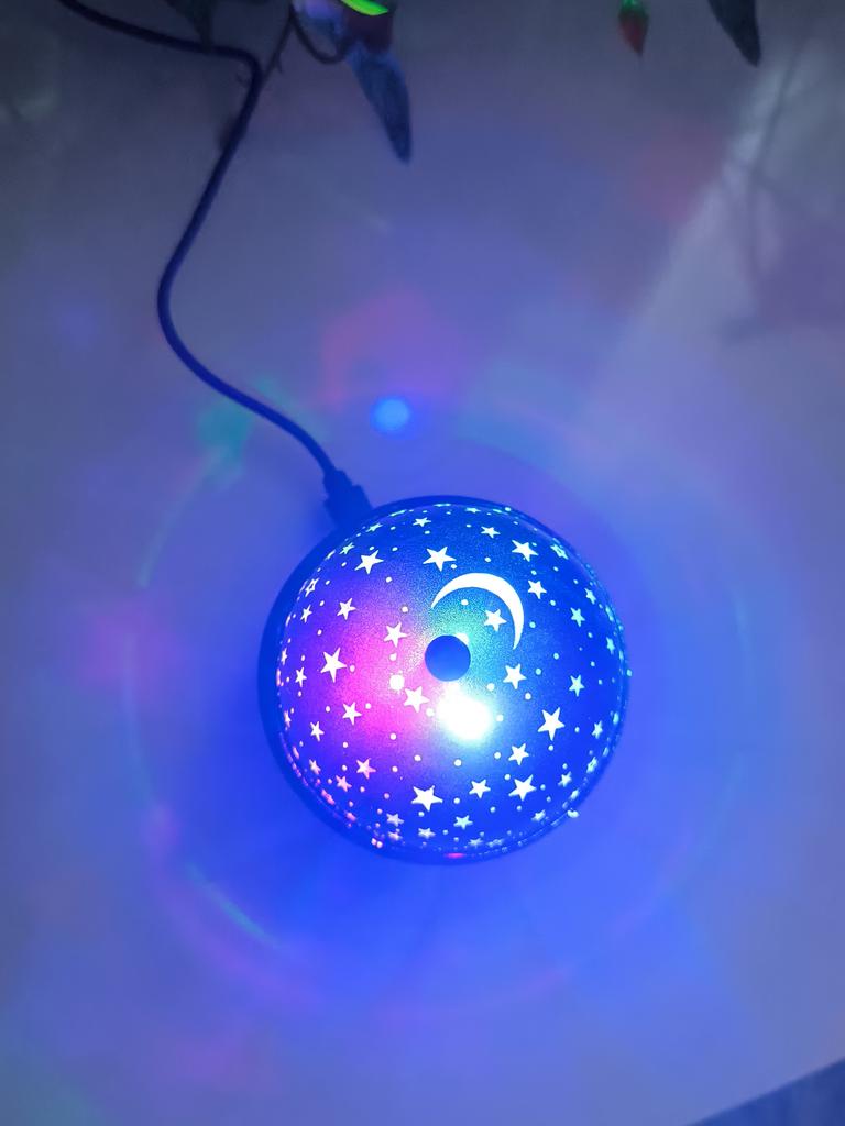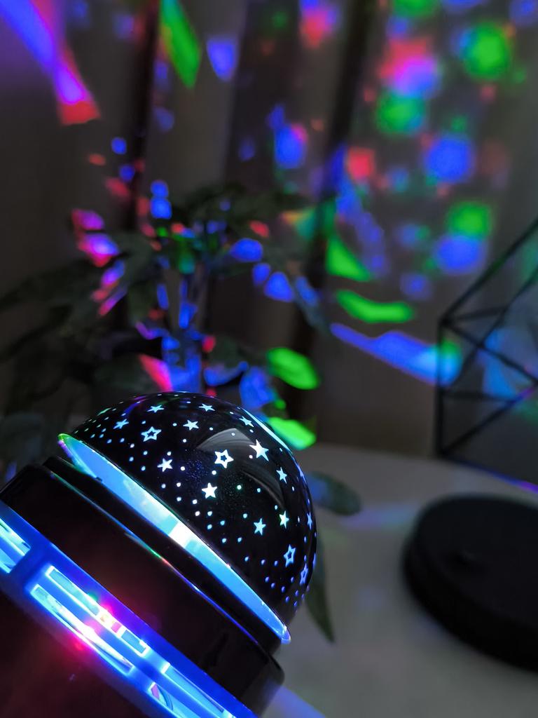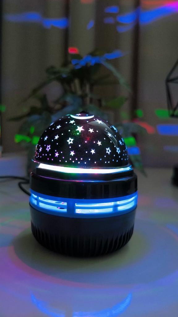 This mini projector is a great way to add atmosphere to a room without extra cost. Here's a brief review of the LED Mini Magic Ball: 🌟 Key Features * 2 in 1: Combines the functions of a 'starry sky' (through perforations in the upper part) and a disco ball with multi-colored highlights. * Power: Works via USB cable, which is convenient — you can connect it to a power bank, laptop, or a regular phone adapter. ✅ Pros * Brightness: The photo shows that the colors (blue, red, green) are quite saturated and apply well to walls and curtains. * Mobility: Thanks to USB power, it can be taken anywhere. * Effect: Creates a cozy or festive atmosphere in seconds. This is a cool budget gadget for home parties, chill zones, or as a night light. For its price, it does the job 100%.