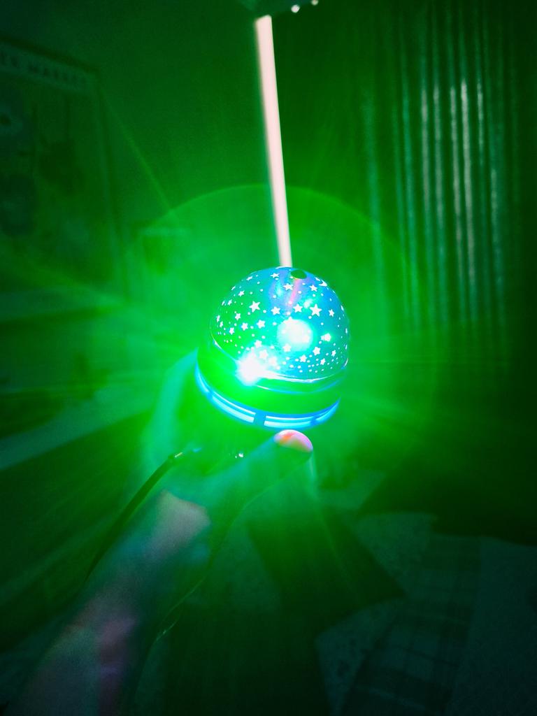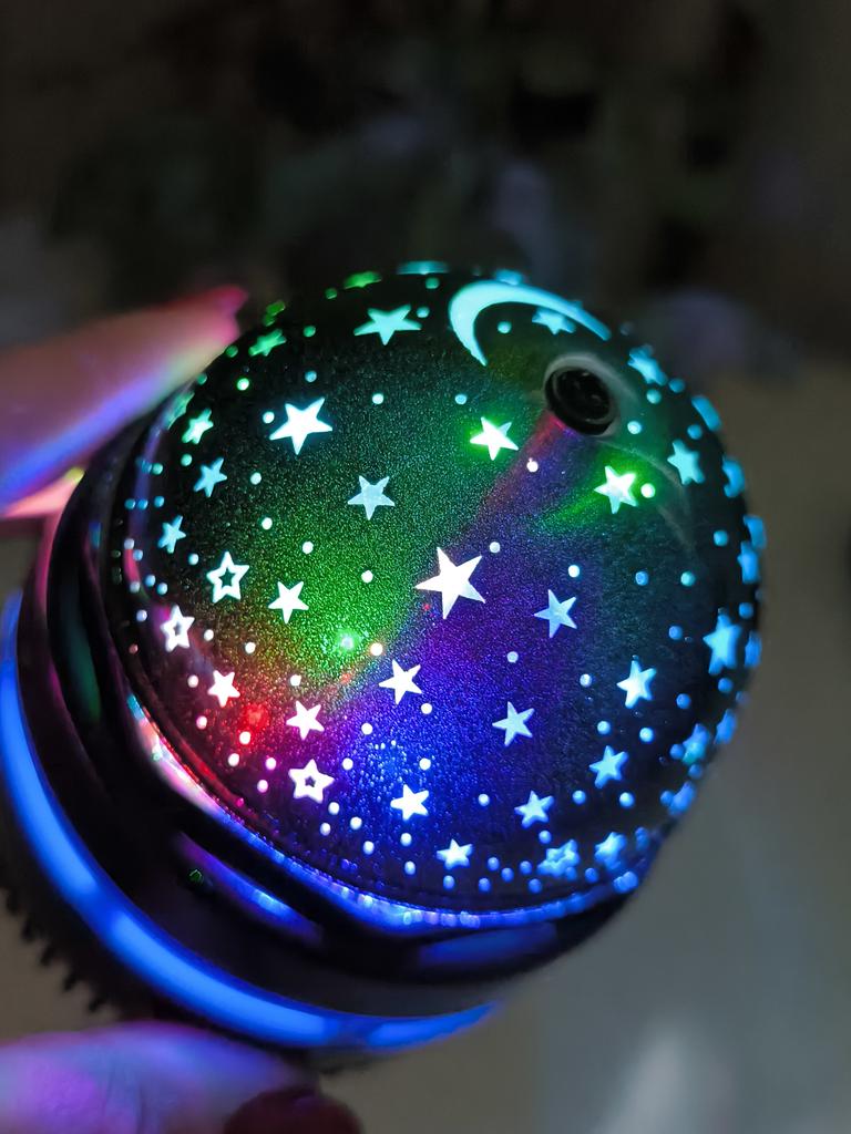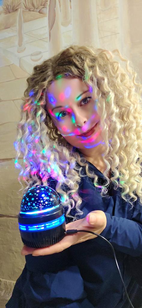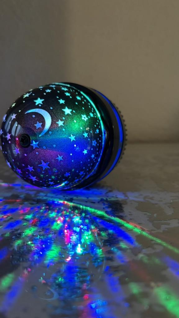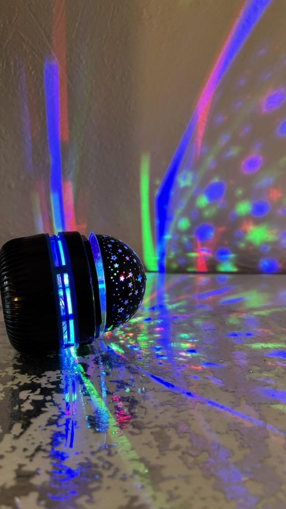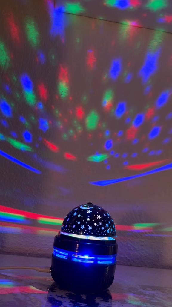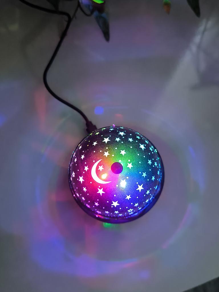 This mini projector is a great way to add atmosphere to a room without extra cost. Here's a brief review of the LED Mini Magic Ball: 🌟 Key Features * 2 in 1: Combines the functions of a 'starry sky' (through perforations in the upper part) and a disco ball with multi-colored highlights. * Power: Works via USB cable, which is convenient — you can connect it to a power bank, laptop, or a regular phone adapter. ✅ Pros * Brightness: The photo shows that the colors (blue, red, green) are quite saturated and apply well to walls and curtains. * Mobility: Thanks to USB power, it can be taken anywhere. * Effect: Creates a cozy or festive atmosphere in seconds. This is a cool budget gadget for home parties, chill zones, or as a night light. For its price, it does the job 100%.