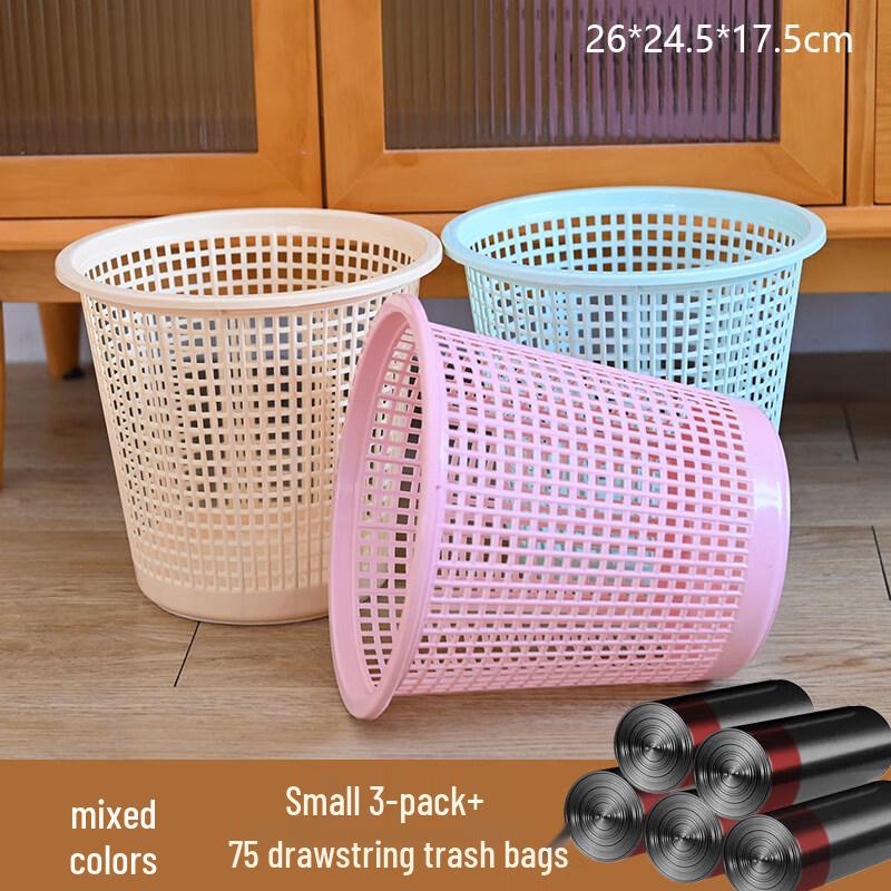 Ally Small Lidless Plastic Trash Cans with Bags - 3 Pack