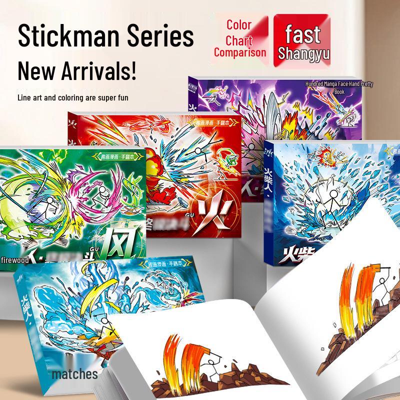 Stickman Tracing & Fighting Flipbook: Children's Comic & Coloring Tutorial