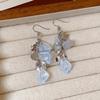 Silver Needle Cat's Eye Stone Shell Stud Earrings: Summer Seaside Style Fashionable High-End Women's Jewelry.