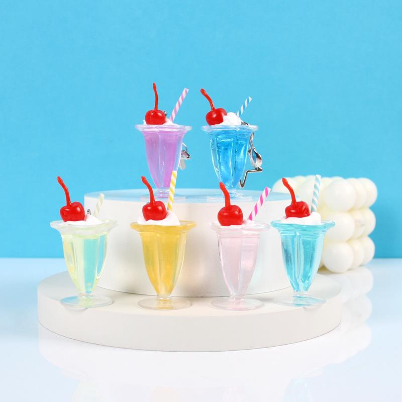 Simulated Ice Cream Cup Keychain with Spoon and Star Charm