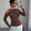 Ladies Spring Autumn Long Sleeve Skew Collar Hollow Bodycon Pullover Casual T Shirt Top