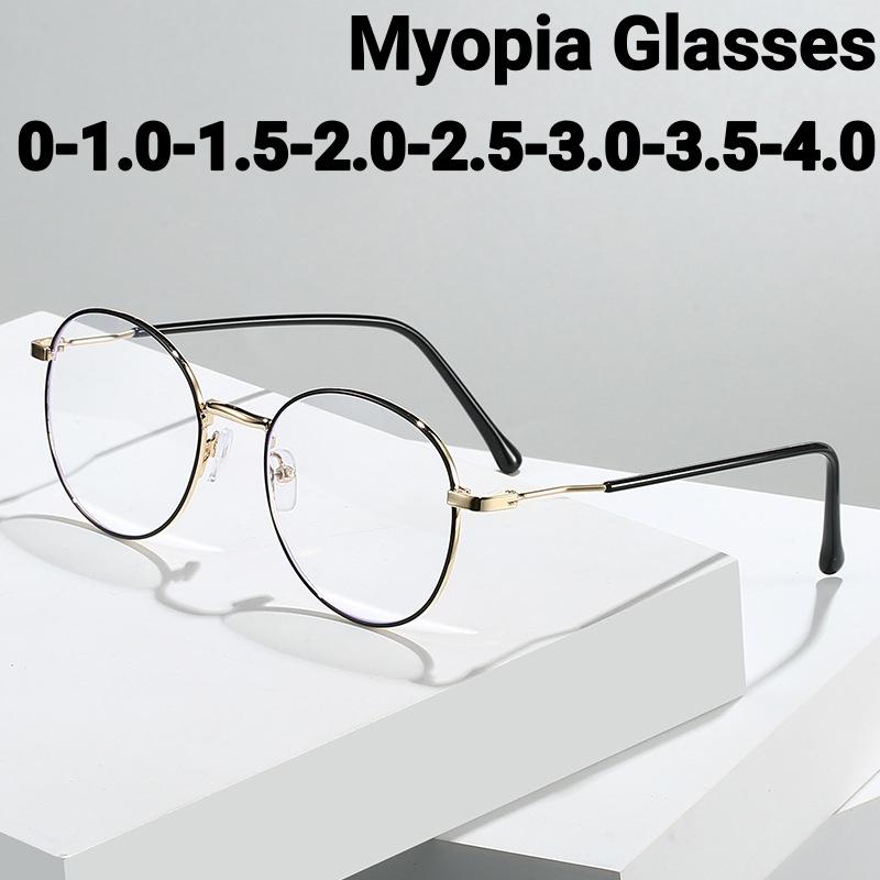 Retro Luxury Round Frame Myopia Glasses Women Men New Vintage Metal Anti Blue Light Near Sight Eyeglasses Minus Diopter Glasses