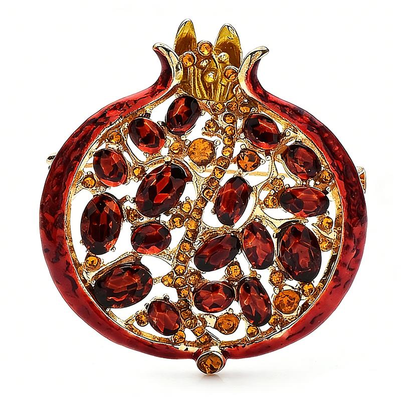 Red Crystal Pomegranate Plant Brooch Pins For Women Summer Jewelry Gift Bag Suit Accessory