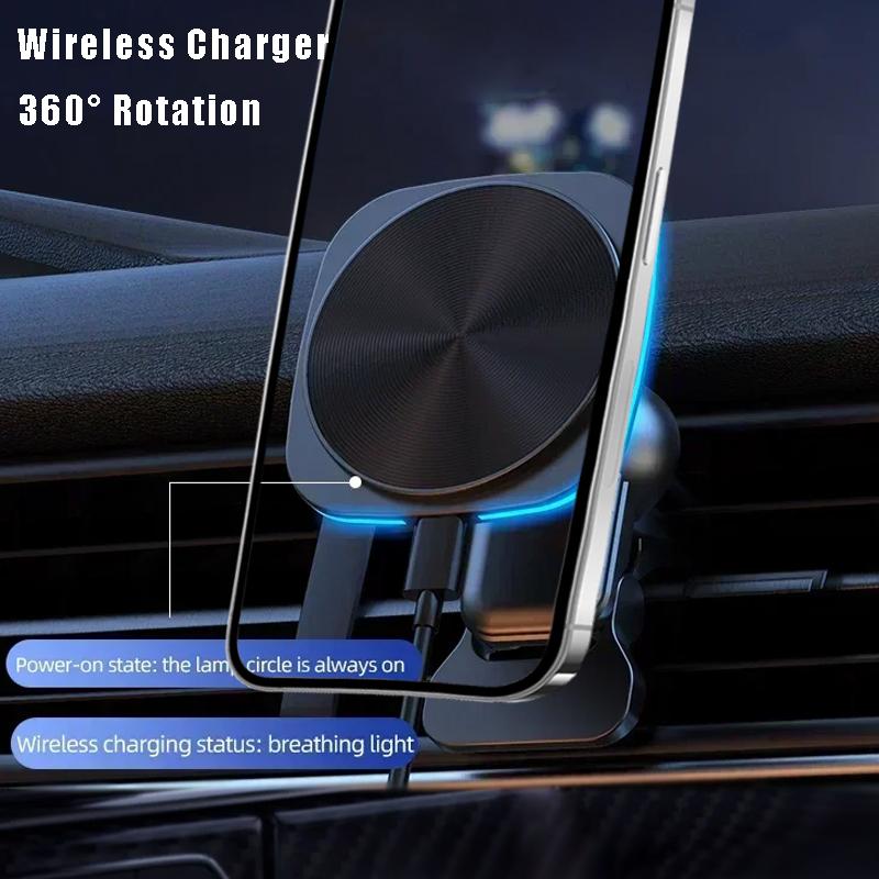 Air Vent Magnetic Phone Wireless Charger Holder Car 360° Rotation RGB/LED Stand For Magsafe iPhone 16 15 14 13 12 Fast Charging