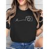 European Size Geometric Heartbeat Camera Pattern Printing, Short Sleeve Crew Neck Casual Top for Summer & Spring, Women's Clothing-pet Lover