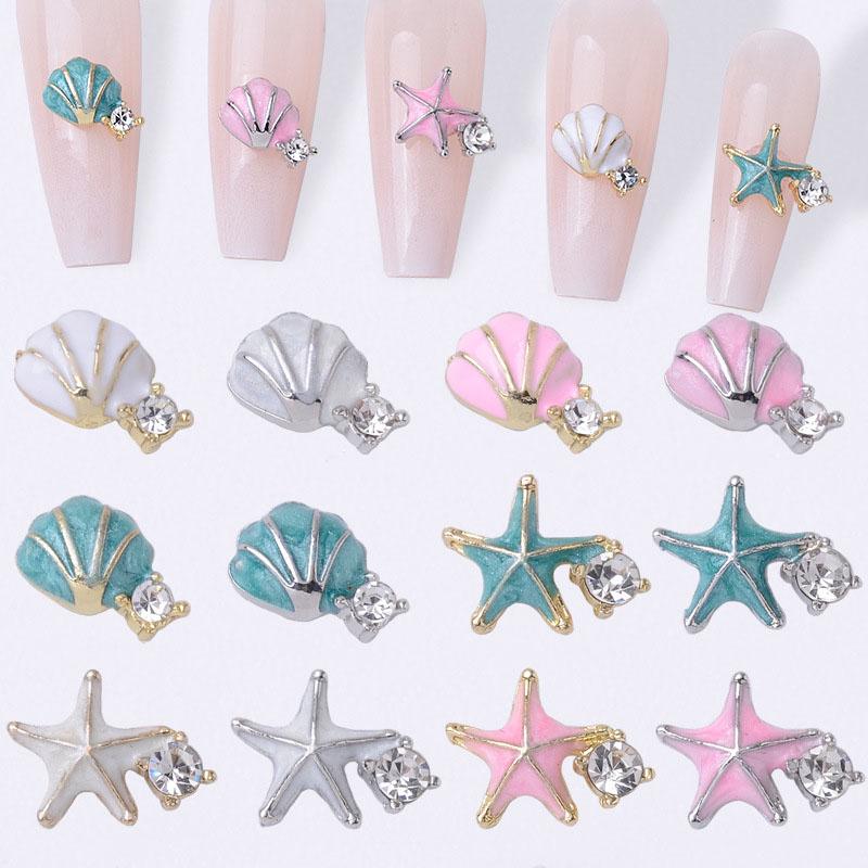10Pcs Ocean Starfish Shell Nail Charms Nail Rhinestones 3D Diamond Alloy Nail Art Decoration DIY Manicure Nail Part Salon Summer