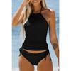 2026 Summer New Womens Swimsuit Neck Hanger Sleeveless Backless Crop Tops Solid Color Panties Bathing Suit Beachwear for Female