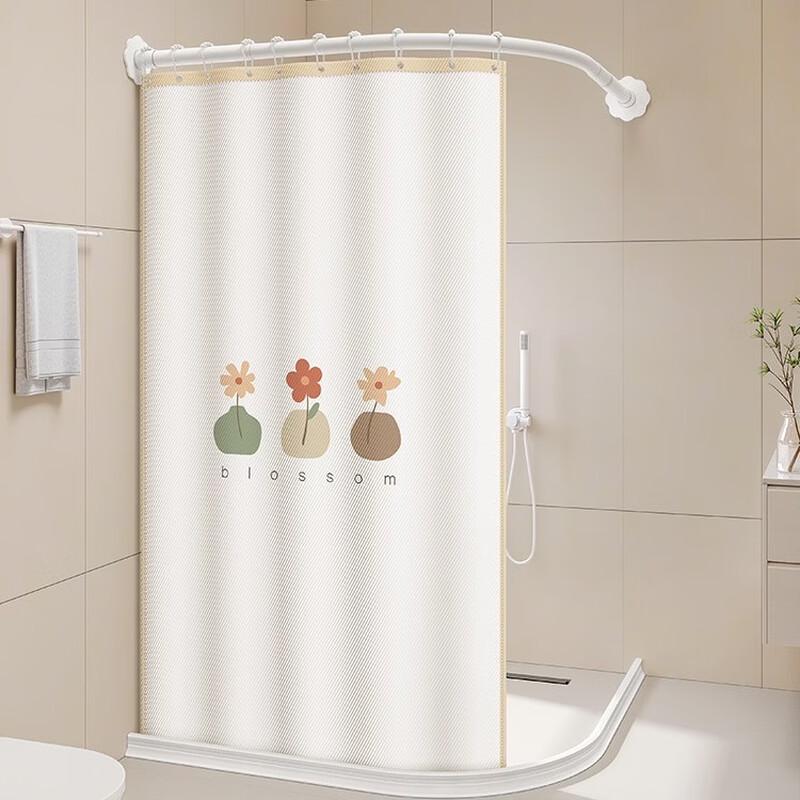 Handun Magnetic Weighted Shower Curtain Set with Telescopic S-Rod