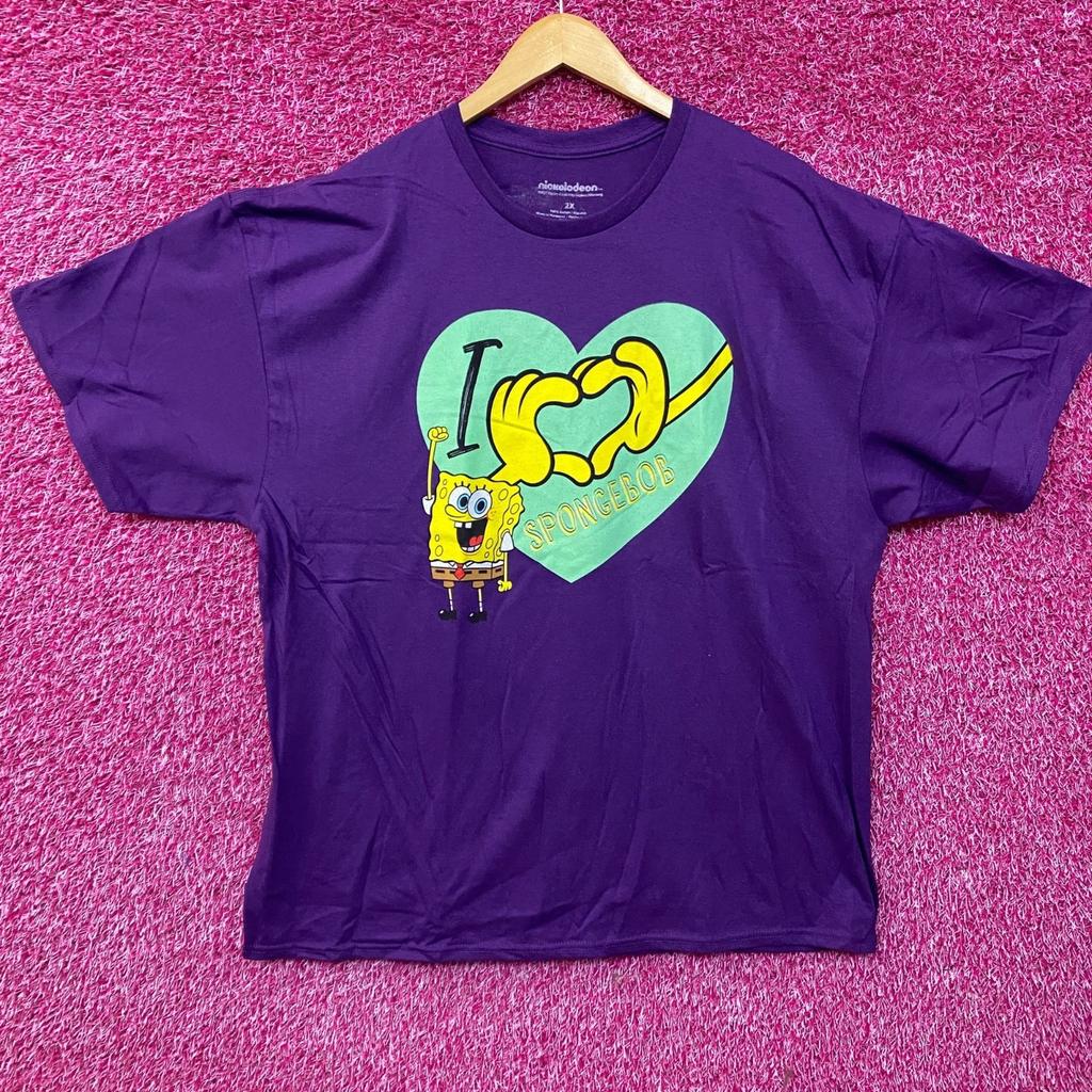 Nickelodeon I Love Spongebob Patrick Gary Rainbow Purple Heart T-Shirt
