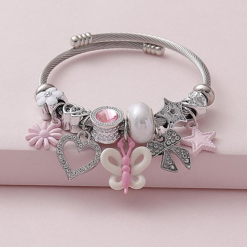 Sweet And Cool Princess Style Pink Butterfly Pendant, Light Luxury Full Diamond High Heels, Ballet Love Diy Opening Bracelet