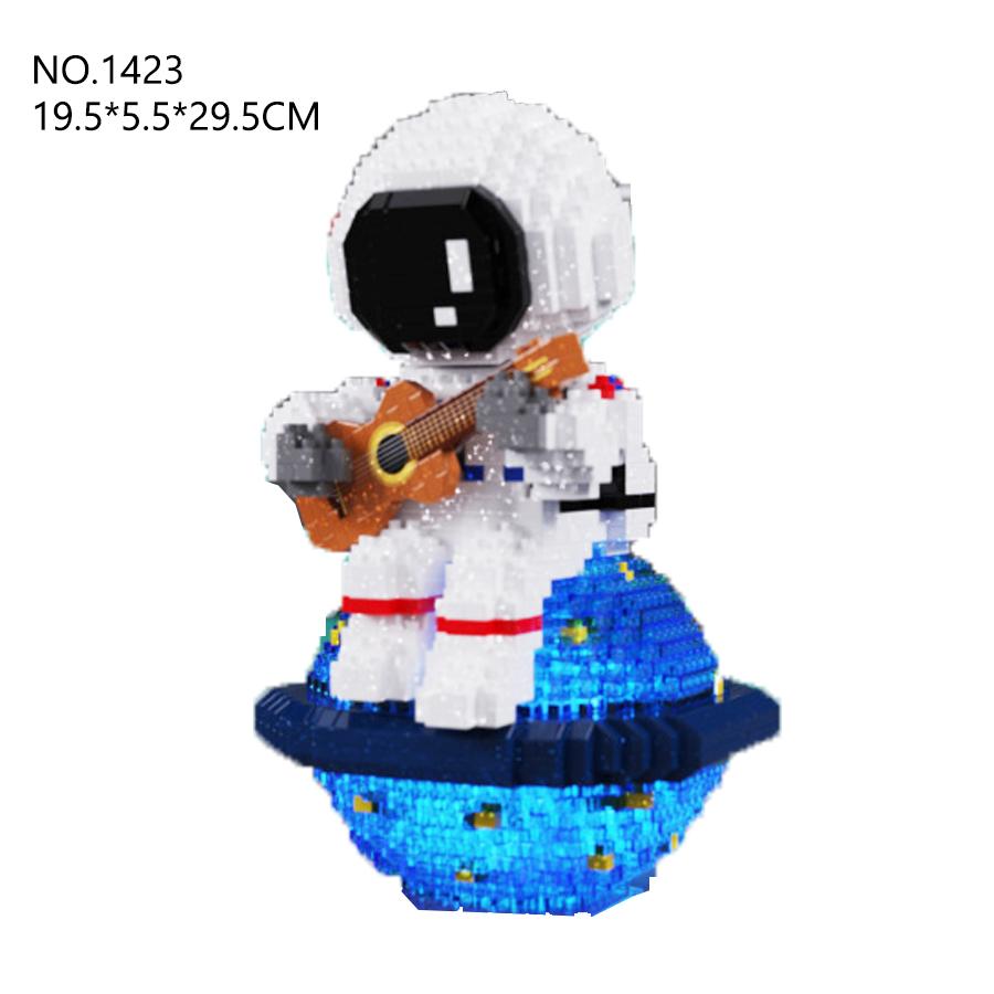 1423pcs Guitar Astronaut Model Micro Building Blocks Luminous Spaceman Desktop Ornament For Kids Toys Gift Set