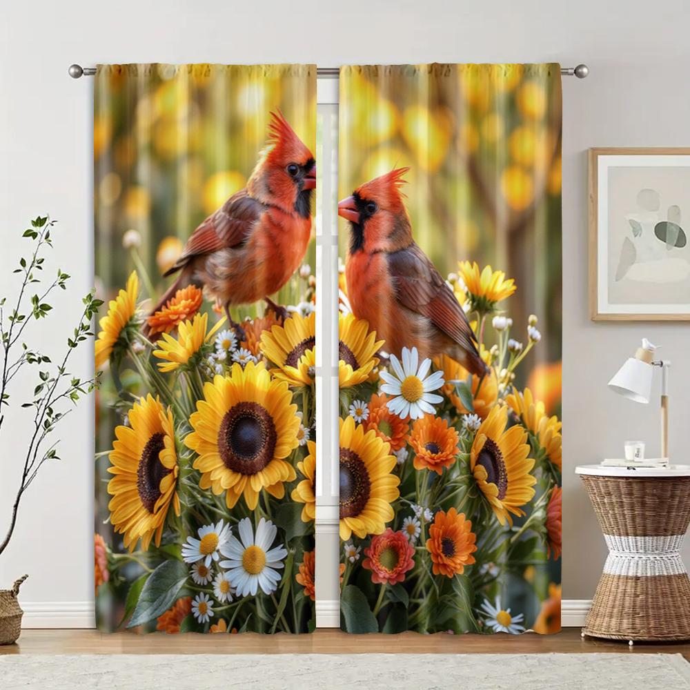 2 Pcs Filtering Curtains (excluding Rods Non-movable Without Batteries) Sunflower & Red-Billed Bird for Use In Bedrooms and