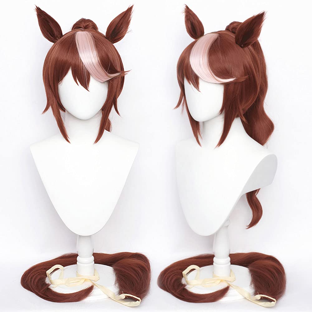 NoryNick Tokai Teio Cosplay Wig with Wig Ears and Tail Net,