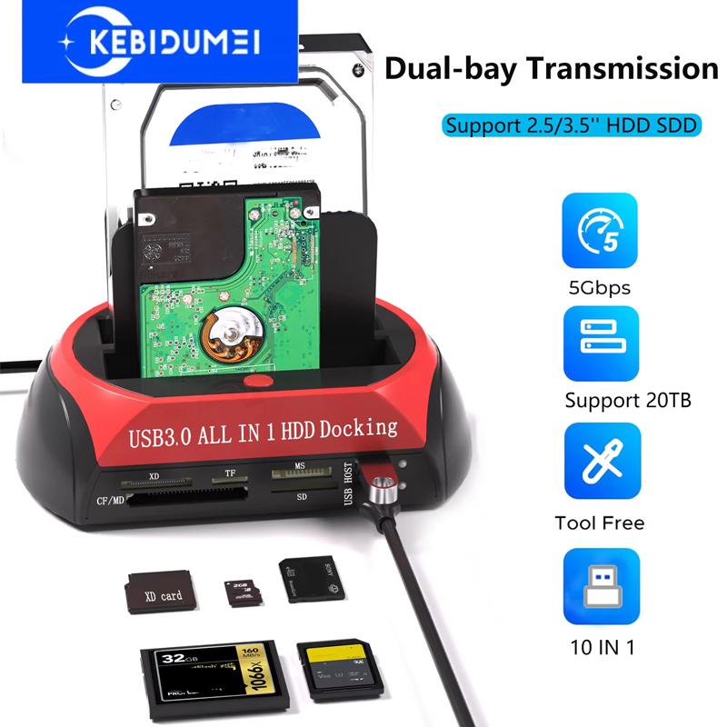 10 In 1 Dual-bay Hard Drive Docking Station for 2.5/3.5 Inch HDD SSD SATA To USB 3.0 HDD SSD Enclosure with 12V3A Power Adapter