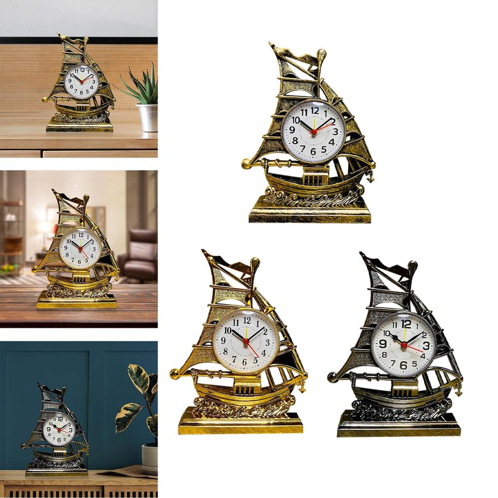Desk Clock Sailing Figurine Table Clocks for Bedrooms Office Living Room