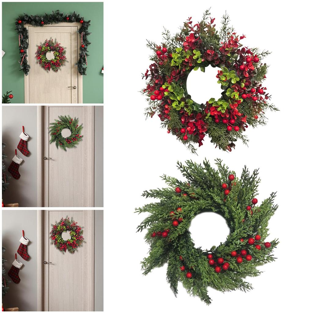 Christmas Wreath Ornament Front Door Winter Holiday Wreath Christmas Garland with Red Berry Clusters for Festival Home Office