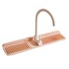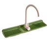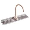 Multi-functional as a dish soap holder and drying mat, its raised 0.83-inch fins promote drainage and quick drying of kitchen essentials. The snap button lock securely fastens the mat behind the faucet to prevent slipping or detachment. An adjustable hole design allows customization for seamless installation, making it an ideal addition to maintain a clean and organized sink area.