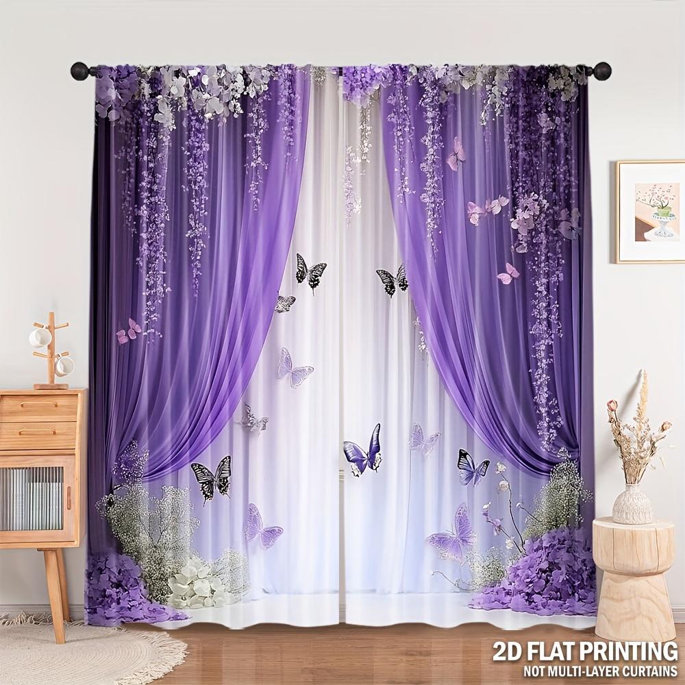 2pcs 2D Artistic Purple & White Door Curtains – for Bedroom Living Room Office Home & Caf Decor