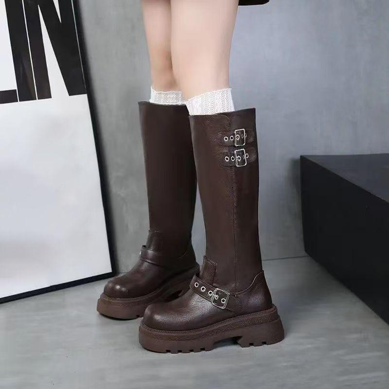 Internet Celebrity Explosion Belt Buckle High Boots Season Retro Style Comfortable Martin Boots Women