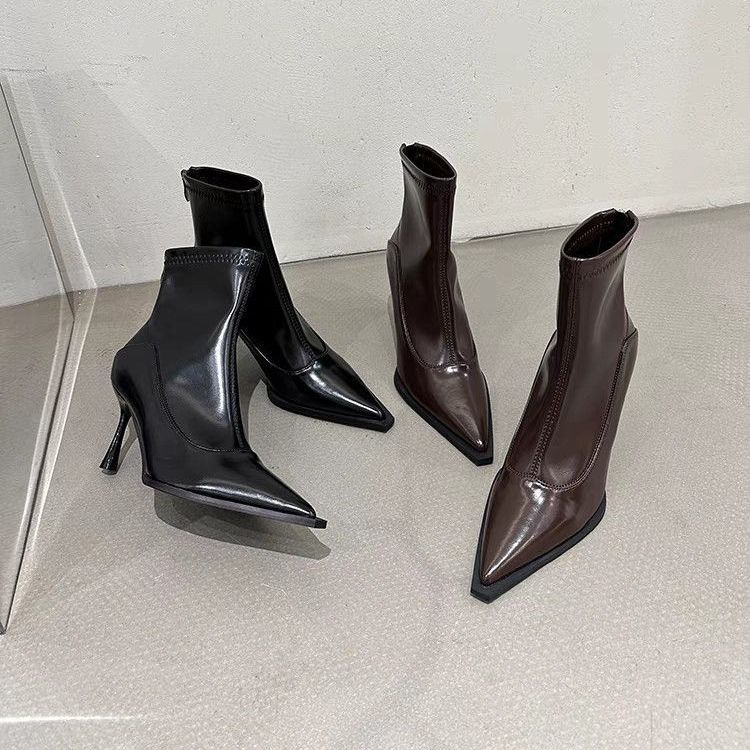 Soft Leather Thin Boots Wrap Legs Without Folds 2026 New Short Bare Boots Thin Heel High Heel Pointed Short Boots Women