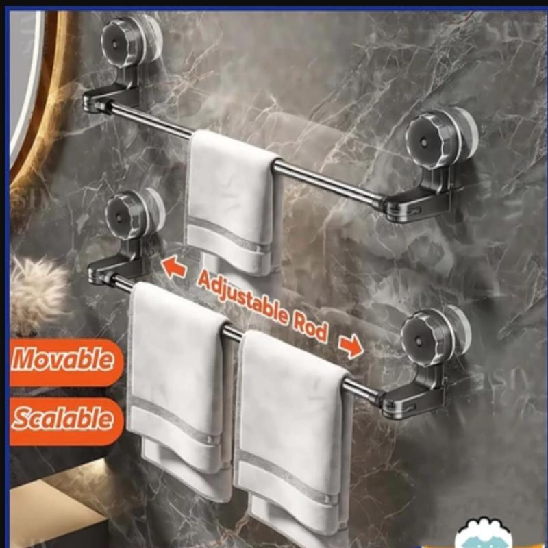 Adjustable No Drill Towel Rac Strongest Suction Cup 360 Rotate Bathroom Storage Space Saving Telescopic Rod Easy Install