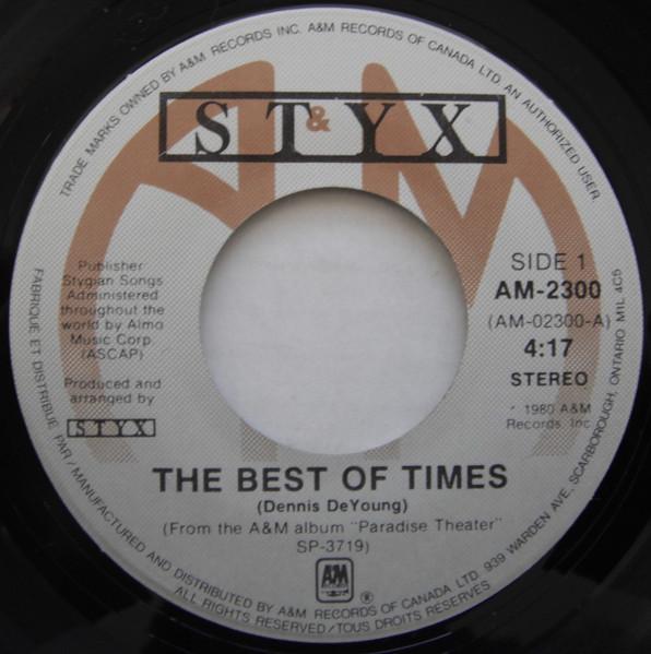 7inch Record STYX The Best Of Times AM2300 AM Records 1980 Canada Rock Used