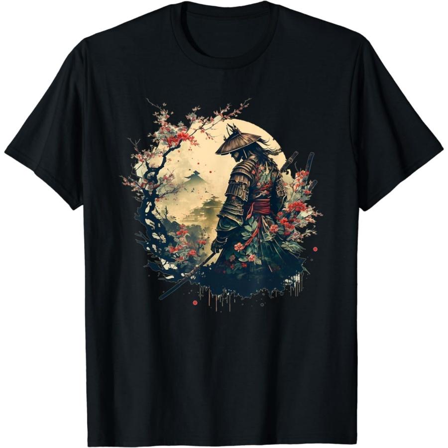 QuKaN Aesthetic Vintage Samurai Japanese Art Samurai Retro Cherry T-Shirt(1)