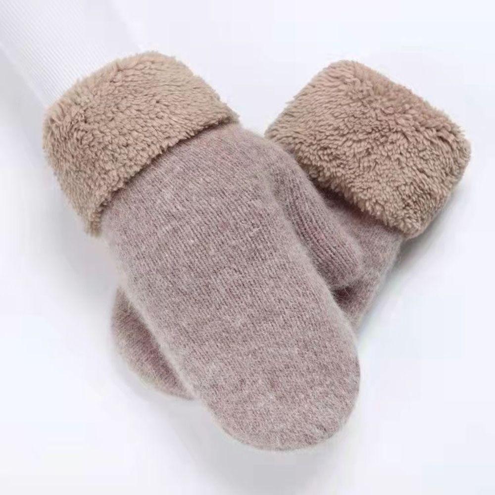 Cashmere-Like All Fingers Mittens Solid Color Fur Knitted Gloves Winter Gloves Women Girl